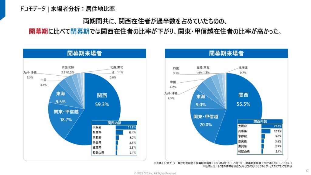 株式会社 D2C(本社:東京都港区、代表取締役社長:高田 了、以下D2C)は、株式会社NTTドコモ(以下ドコモ)が保有する1億超(※1)の会員基盤をベースにしたドコモデータ(※2)を活用したイベント・観光旅行事業に携わる企業様向けの「大阪・関西万博 来場者分析レポート」を公開いたしました。