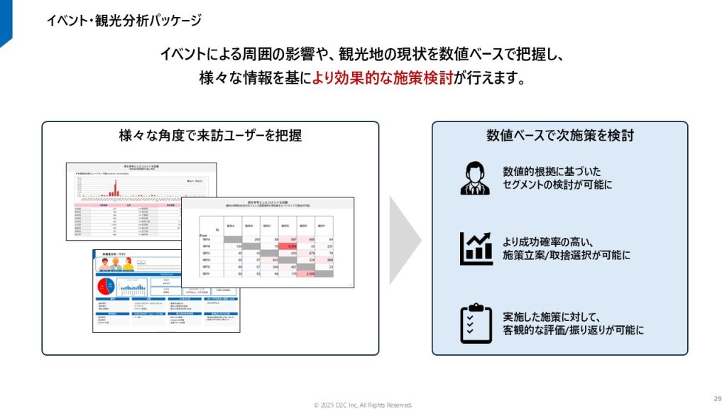 こうした市場における顧客の正確なニーズや行動経路を把握することは、イベント・観光旅行事業に携わる企業にとって集客施策や地域経済への影響を分析する上で極めて重要です。しかし、従来の分析手法では、イベントにおける「実際の来場者」を高精度で捉え、居住地や趣味嗜好といった詳細な情報を紐づけることが困難でした。