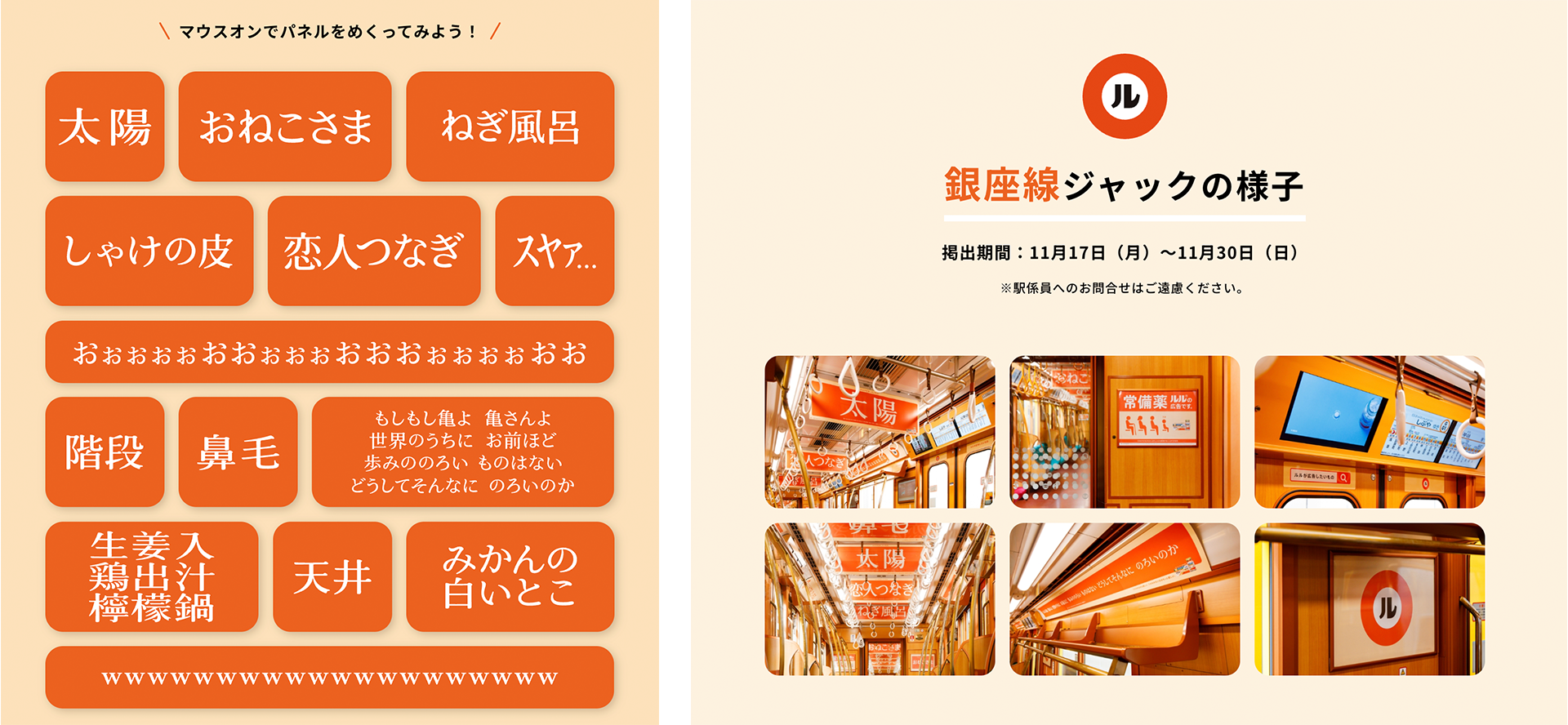 第一三共ヘルスケア株式会社様の風邪薬「ルル」が実施した、東京メトロ銀座線の車内広告ジャックを用いたプロモーション「ルルが、広告したいもの。」の特設サイトを制作。「つかわれるのは嬉しい、つかわれないのはもっと嬉しい」をメインコピーに、身近な“からだを守る仲間たち”を表現した各種コピーを、WEBらしい表現でまとめられるよう企画・制作をプロデュースしました。